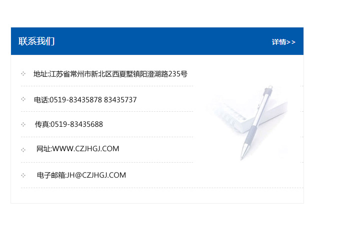 傳真:0519-83435688    郵編:213135    網址:WWW.czjhgj_com.enbaoyb.com    電子郵箱:JH@czjhgj_com.enbaoyb.com